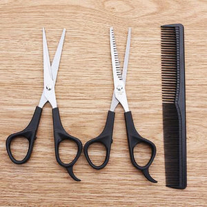 black Hardness: 4cr13 Ordinary hair clipper size: 16.5cm Weight loss scissors size: 16.5cm Black comb size: 17.5cm Package Included: 1 x ordinary hair clipper 1 x weight loss scissors 1 x comb